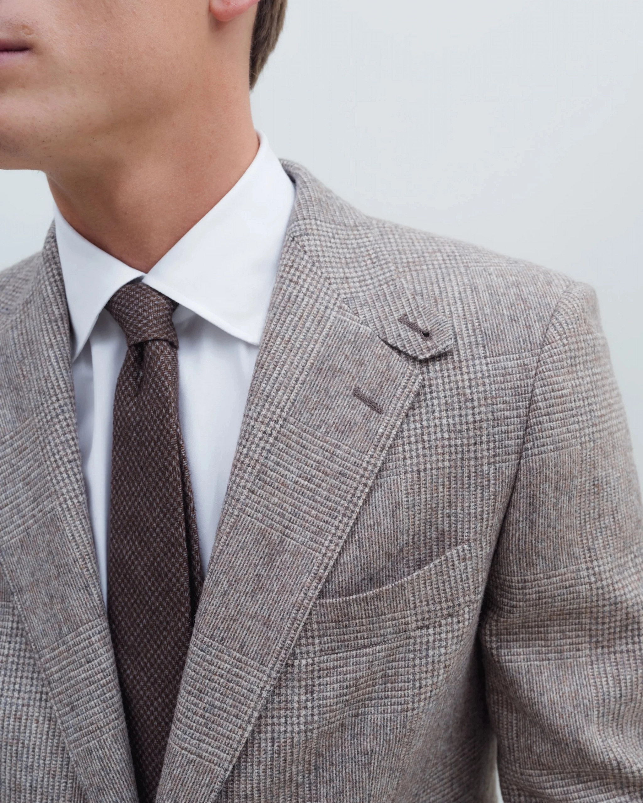 Brun ternet Jomfruuld sportsjakke - brun ternet sportsjakke i premium uld med karakterfuldt mønster.
