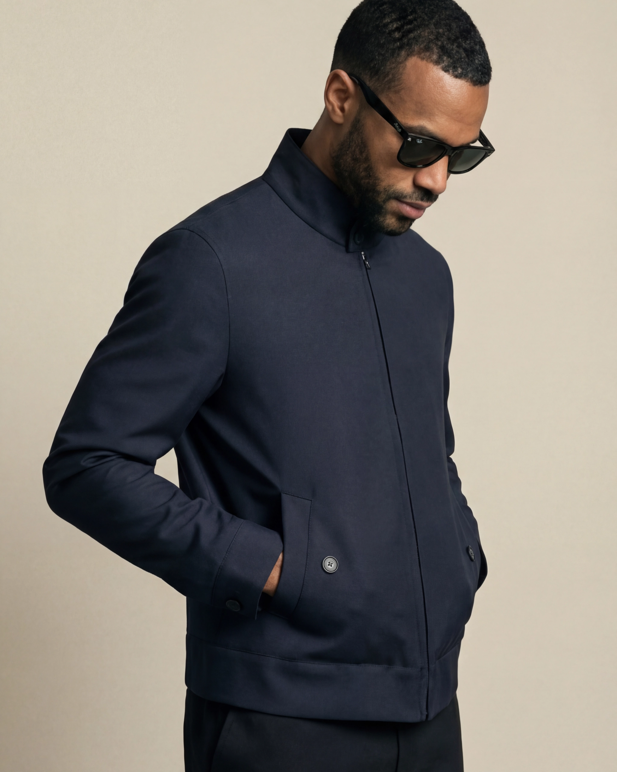 Navy Harrington Jacket kombinerer tidløs stil med moderne alsidighed og er perfekt til enhver garderobe. Jakken har opretstående krave, ribbede manchetter og praktiske lommer, som gør den funktionel og stilfuld. Jakken er fremstillet af førsteklasses materialer og sikrer holdbarhed og komfort ved hvert eneste brug. Uanset om man klæder sig op eller ned, giver den et klassisk, raffineret touch til ethvert outfit.