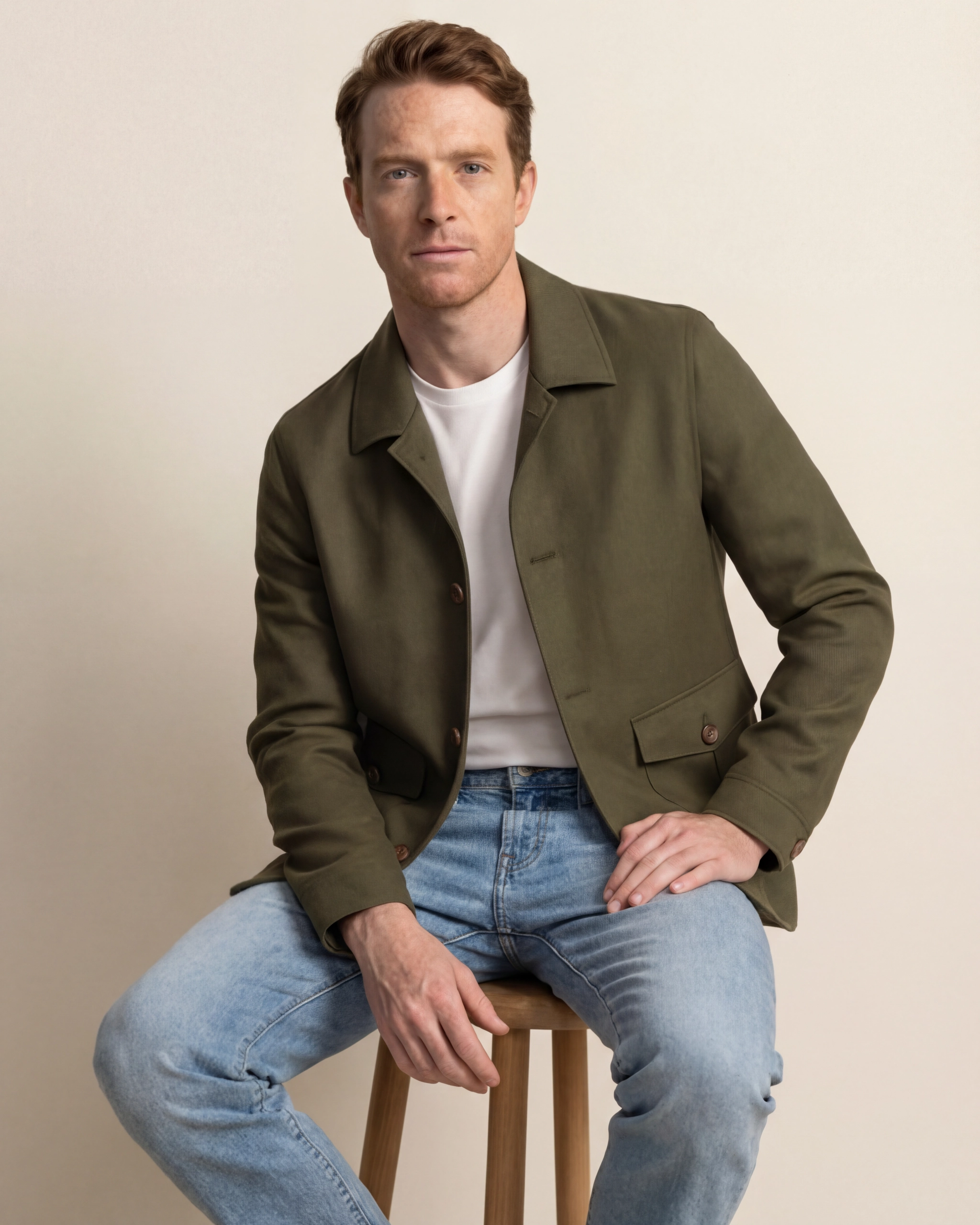 Stilfuld blouson i olivenfarvet hør til afslappet elegance.